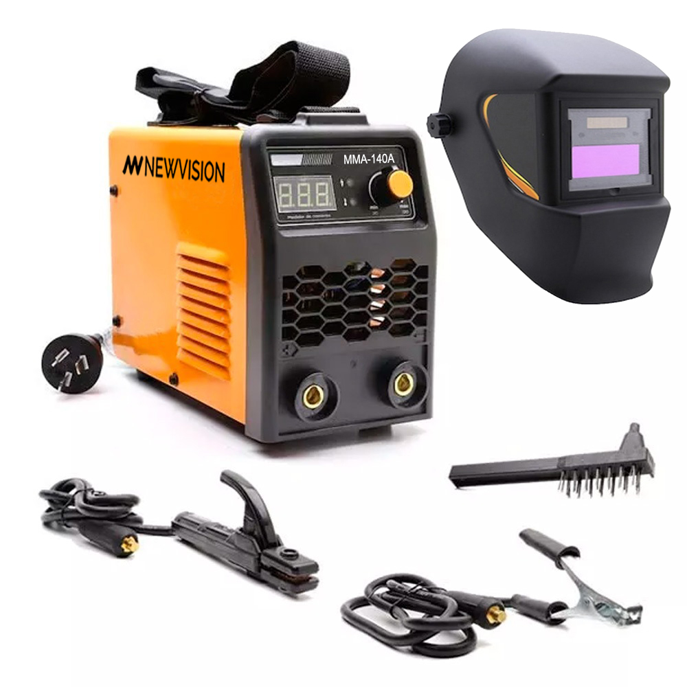 La caja incluye: – Soldadora Inverter NEWVISION MMA-140A – Mascara de soldar NEWVISION V-300S – Correa y cables – Porta electrodo – Pinza masa – Manual ¯¯¯¯¯¯¯¯¯¯¯¯¯¯¯¯¯¯¯¯¯¯¯¯¯¯¯¯¯¯¯¯¯¯¯¯¯¯¯¯¯¯¯¯¯¯¯¯¯¯¯¯¯ -> Acerca de este producto: Maquina De Soldar NEWVISION MMA-140A: – Tecnología INVERTER IGBT – INTEGRADOS SANKEN ORIGEN: JAPONES – Sistema de refrigeración por ventilación forzada – Indicador digital de corriente – Tecnología HOT START: Precalentamiento del electrodo, facilitando el cebado – Tecnología ARC FORCE: Suelde con un arco muy corto en posición vertical-ascendente. – ANTI-STICK: Evita que el electrodo se pegue a la pieza – PROTECCION TERMICA: Protege la integridad estructural de su maquina